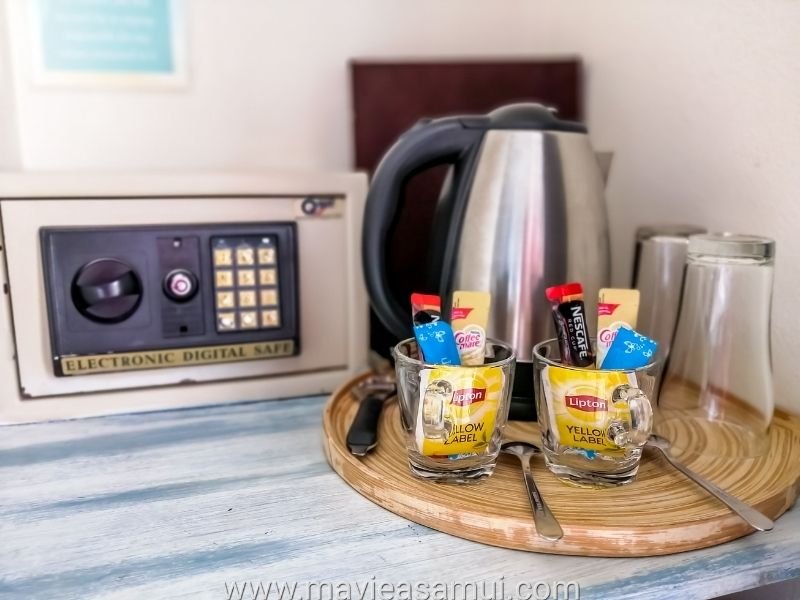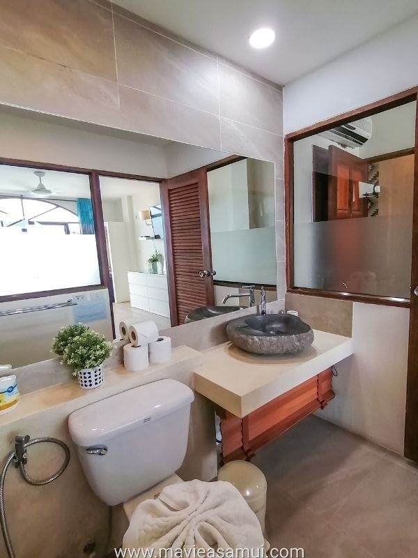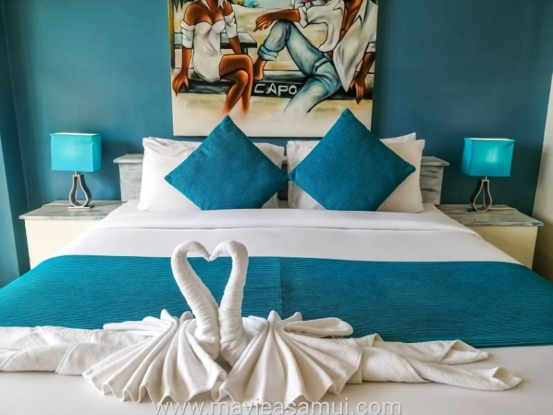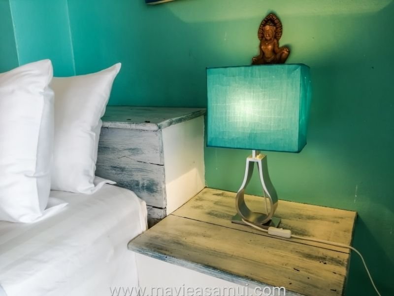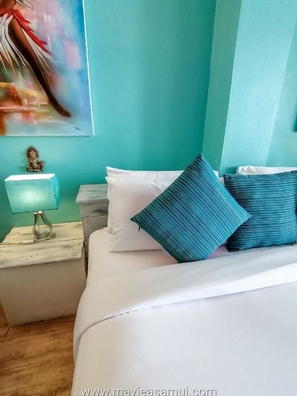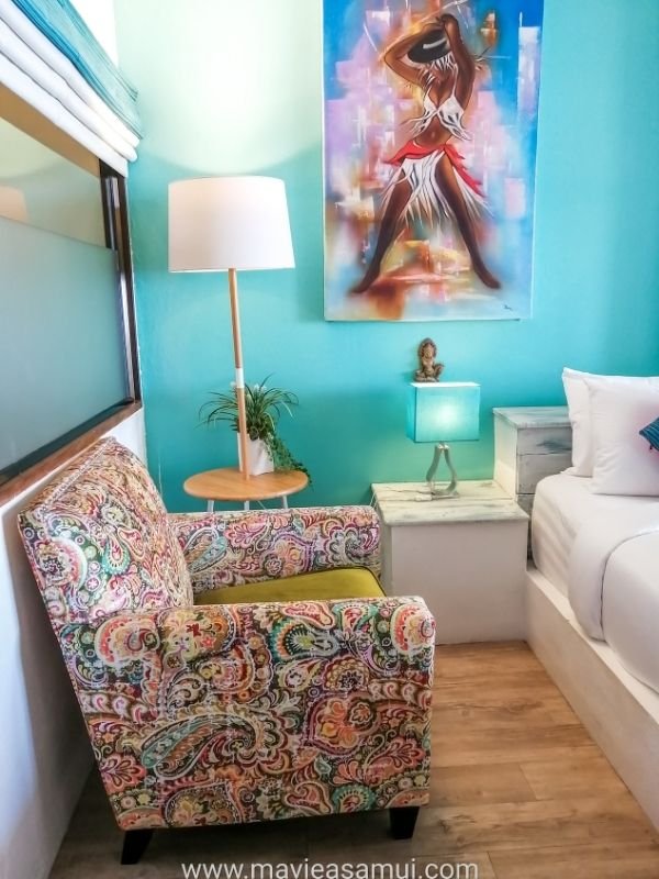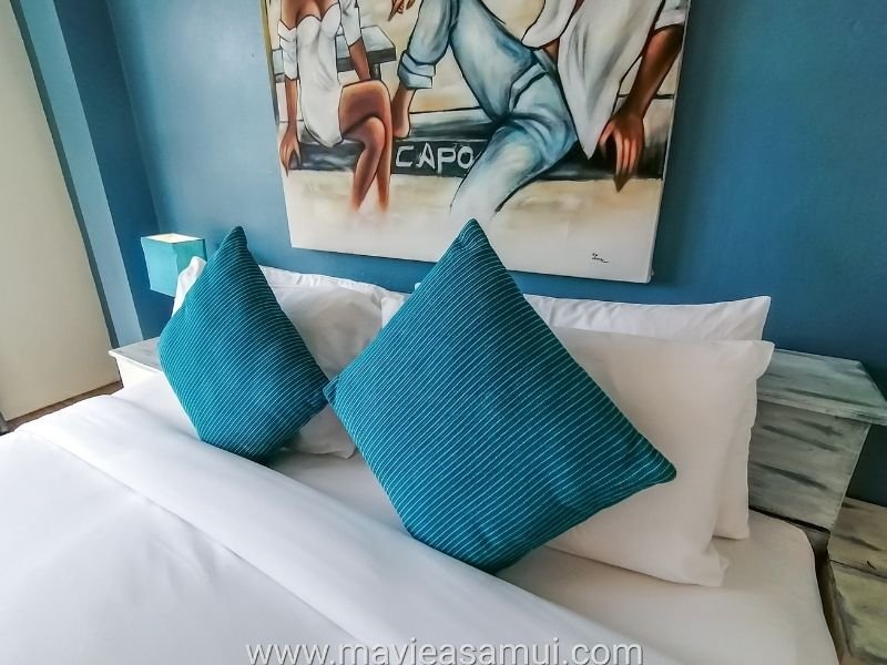 L’hôtel propose 8 chambres dont 4 chambres avec vue mer, 2 chambres avec vue sur le village ainsi que 2 suites sur la plage de Fisherman’s Village. Chaque suite est grande, confortable et dispose chacune d’une grande terrasse privée juste devant la plage de sable. Le décoration intérieure est relaxante grâce à ses couleurs douces et pastels. Un agréable mélange d’Espagne et Bali. La suite est équipée de tout le confort avec un grand lit, un coin salon, une salle de bain/toilettes moderne. Il y a la climatisation, des ventilateurs, un réfrigérateur, un coffre fort, une penderie, du mobilier. La suite et sa terrasse ainsi situées permettent de se plonger dans l’ambiance vacances et détente de l’île de Koh Samui.