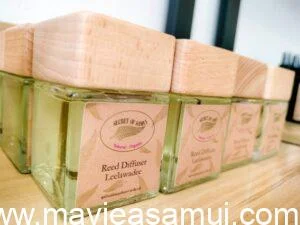 Les hôtels-boutiques et les villas de Koh Samui proposent ainsi à leur clientèle en vacances des huiles de massage, des shampoings, des lotions pour le corps, des crèmes, des savons à la senteur créée spécialement pour l’établissement.