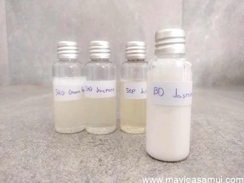 Secret Of Samui Cosmetics propose dès lors des produits sains, tendances et biodégradables (gels douche et shampoings) avec des senteurs thaïlandaises à base de fleurs et de plantes locales et internationales.