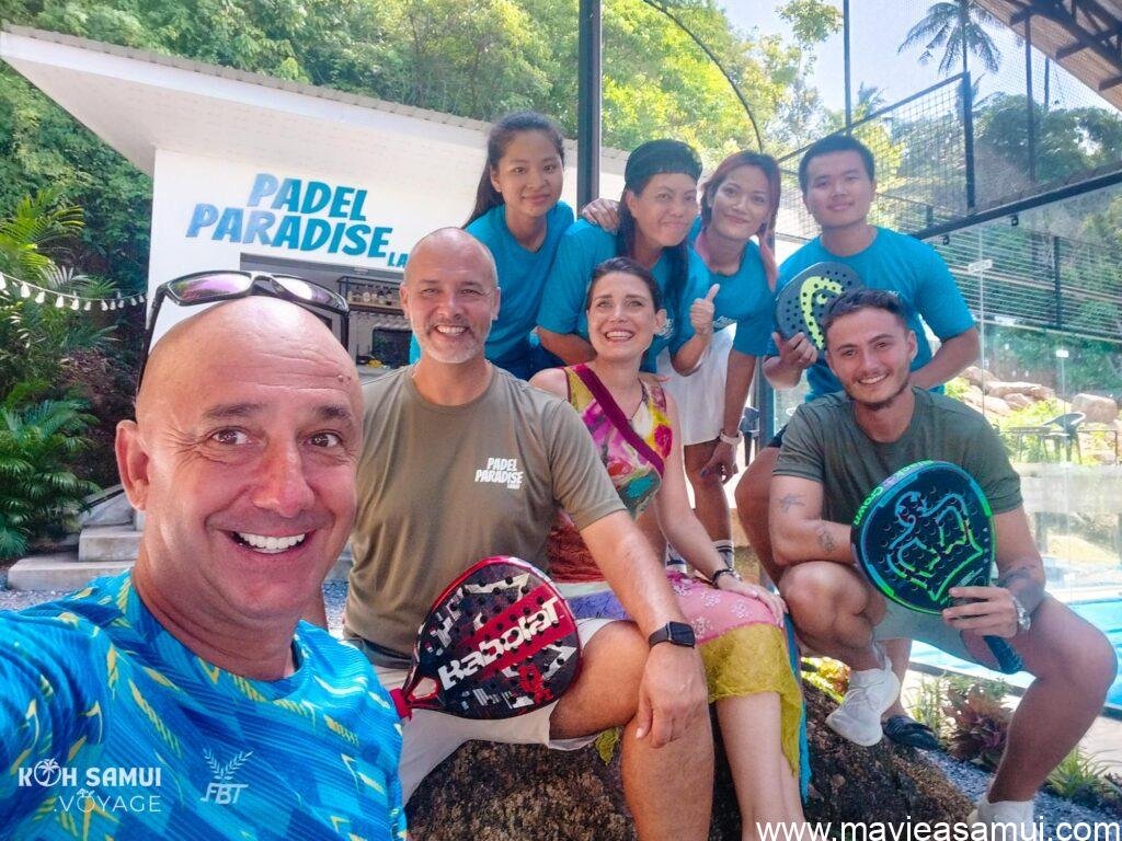 Flash News : j’ai découvert en français dans le centre de Lamai ce sport convivial que l’on nomme Padel. Il se pratique dans le centre sportif Padel Paradise Lamai tenu par un trio français très sympathique, Swan, Eric et Maeva.