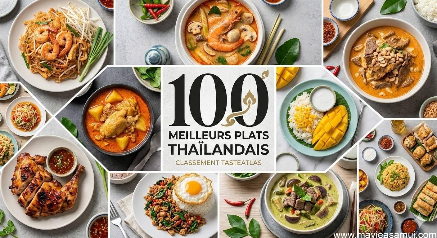 Salut à tous, c’est Bernie ! Si vous me suivez sur Ma Vie à Samui, vous savez que pour moi, la Thaïlande ne se visite pas seulement avec les yeux, elle se découvre surtout avec les papilles. Aujourd’hui, on va parler de « sérieux » : le célèbre guide gastronomique TasteAtlas vient de mettre à jour son classement des 100 meilleurs plats thaïlandais. Alors, est-ce que nos classiques préférés de Koh Samui sont dans le haut du panier ? Est-ce que le Pad Thaï est toujours le roi ? Accrochez vos ceintures (et vos serviettes), je vous décrypte ce topLire plus